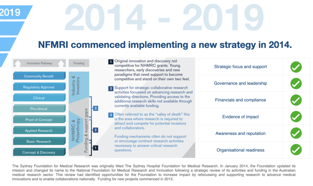 Please note that partnering with NFMRI is not for everyone. Our strategy is very targeted with regards to what we support and how our support is applied. While we are quite flexible with disease/condition and/or geographic location, we remain committed to partnering with other foundations, charities, PuAFs, PAFS and individuals etc who may have specific giving needs, but are interested in utilising NFMRI’s strategy, processes, capability and capacity.